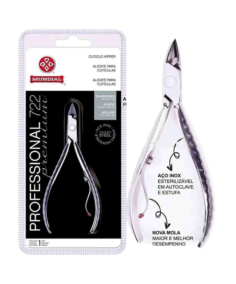 ALICATE DE CUTÍCULAPROFESSIONAL 722 – MUNDIALAlicate de cutícula profissional que é facilmente esterilizável em autoclaveEm aço inoxidávelLâminas afiadasCabo antideslizante para mais segurança e conforto ao manuseioCorte preciso e alta durabilidadeRetirada de cutícula precisa e seguraMola resistente com redutor de atritoSuporta maior número de afiaçõesCabo curtoEsse produto é indicado para podólogos e manicures profissionalContém 01 unidade.Restrições/Riscos: Este produto tem risco de corte. Mantenha-o fora do alcance das crianças
