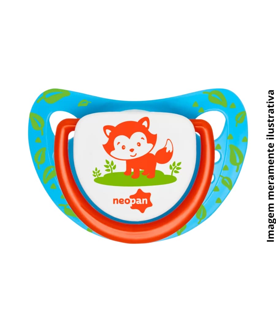 Chupeta neopan 4826 nº2 ortodôntico silicone azul /laranja, tam: 02, maiores de 6 meses, bico silicone orto, não contém bisfenol- a, com argola, decorada.