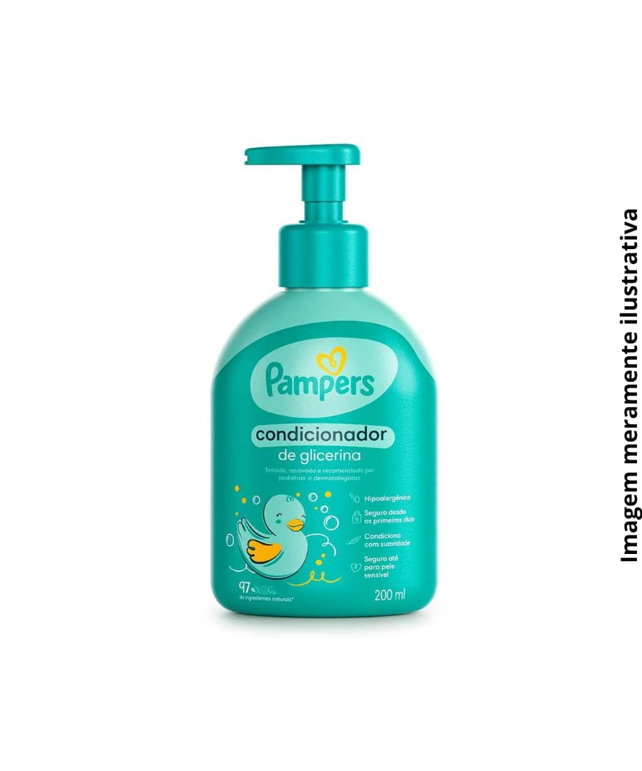 O Condicionador de Glicerina Pampers® foi criado pensando em desembaraçar com facilidade os fios e condicionar de forma suave e segura. Sua composição não contém nenhum álcool etílico, fenoxietanol, parabenos e corantes, trazendo maior suavidade e mantendo os fios do seu neném macios.