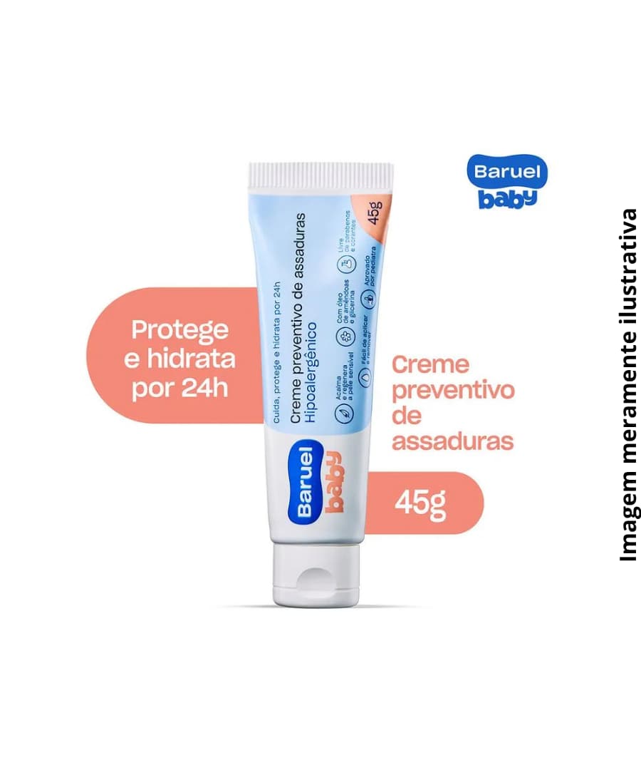 A Pomada para Assadura Baruel Baby Hipoalergênico é um creme especialmente desenvolvido para a prevenção e tratamento das assaduras na pele delicada e sensível dos bebês. Sua fórmula suave e eficaz cria uma barreira protetora que isola a pele da umidade e do contato com fezes e urina, principais causadores de irritações. Enriquecida com Óxido de Zinco, um agente protetor e secante, a pomada ajuda a acalmar a pele e a acelerar o processo de cicatrização de assaduras já existentes. Além disso, contém Óleo de Amêndoas, Vitamina E e Manteiga de Karité, ingredientes que nutrem e hidratam profundamente, mantendo a pele macia e saudável.