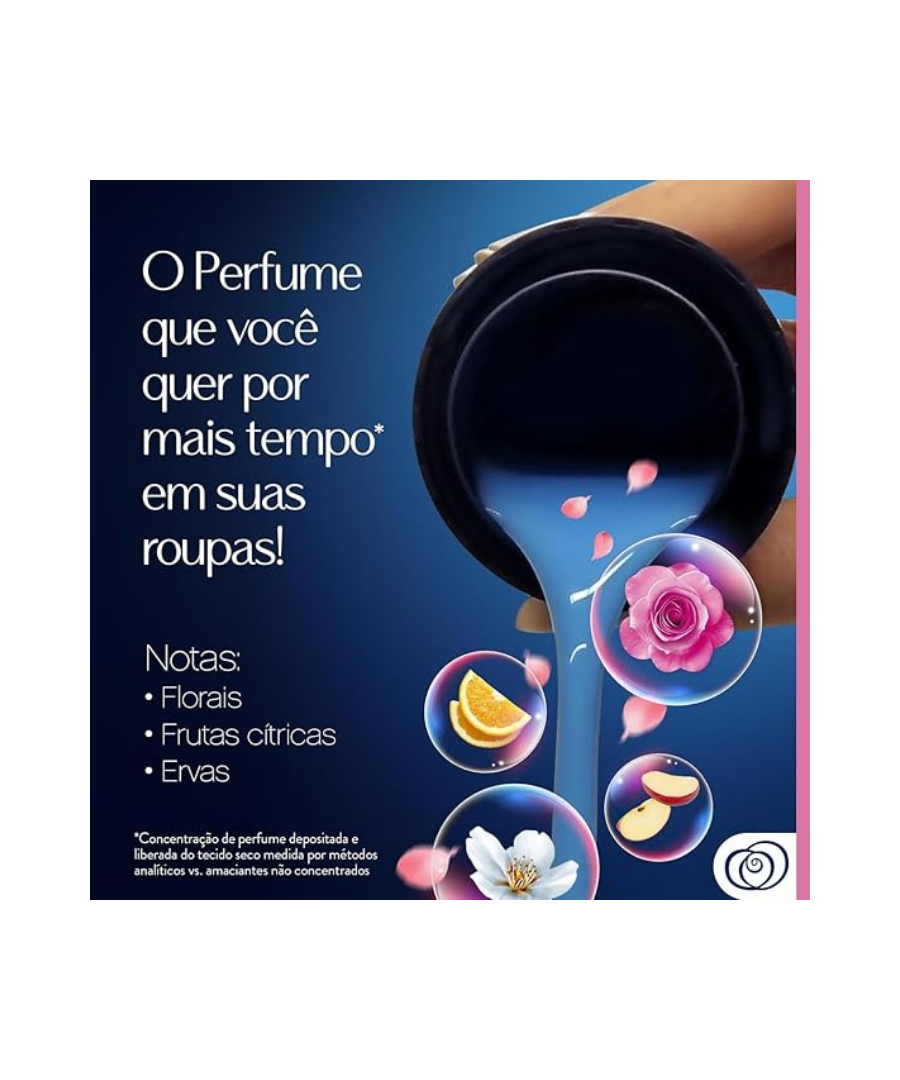 Amaciante de roupas líQuido concentrado para amaciar e perfumar roupas brancas e coloridas. Sua fórmula contém microcápsulas que liberam perfume a cada vez que você se mover ou tocar sua roupa, fazendo com que você se sinta ainda mais delicada.