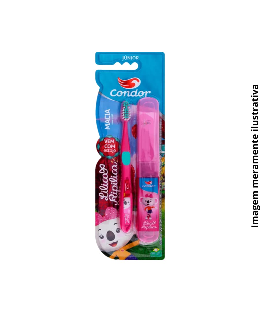 Kit Dental Condor Júnior Lilica Ripilica, escova desenvolvida para promover uma escovação eficiente e segura para crianças. Possui cerdas macias que limpam suavemente sem agredir a gengiva, além de cabeça compacta, ideal para bocas pequenas. Produto com apelo visual atrativo, favorecendo o incentivo à higiene bucal desde cedo. Acompanha estojo protetor de cerdas, ideal para transporte e conservação da escova. Idade : 6 anos +.