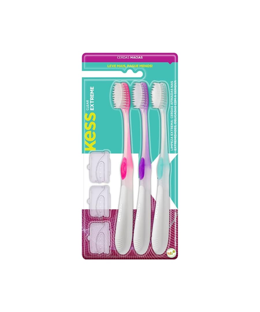 Escova Dental Kess Clear Extreme. Cerdas Tipper, Que São até 6X Mais Finas na Extremidade e Facilitam a Limpeza Interdental, Além de Diminuírem o Atrito com a Gengiva/ Cabo com Grip de Borracha e Cabeça Angulada.