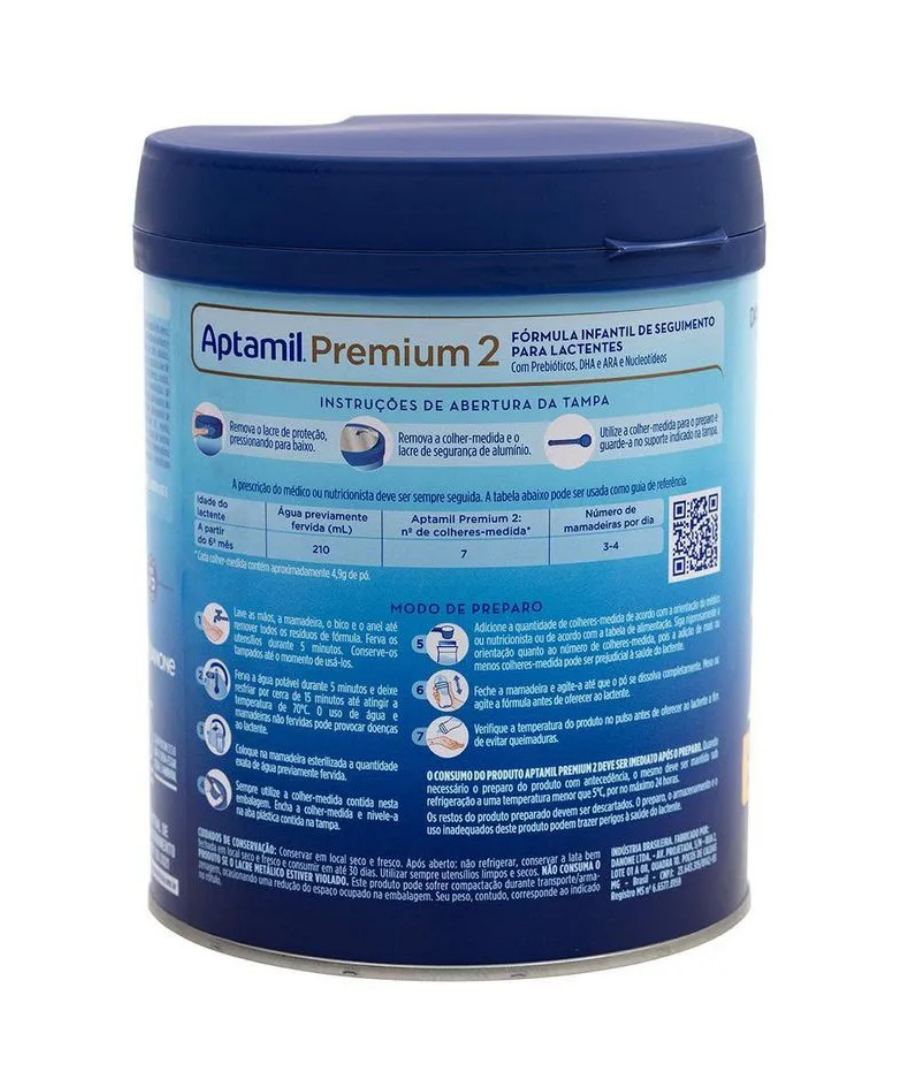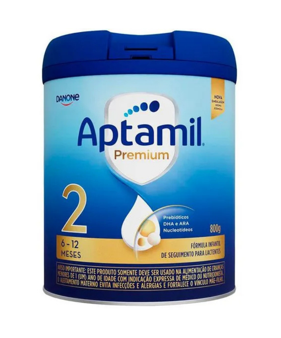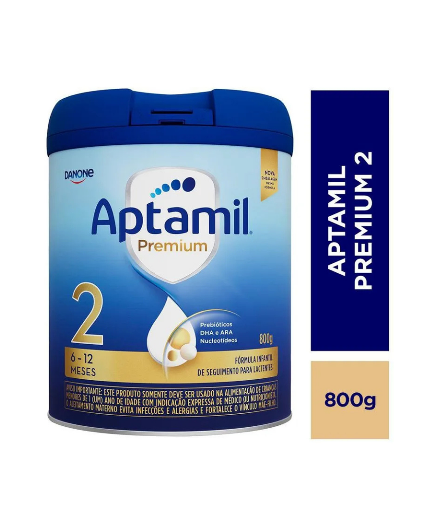 O Aptamil Premium 2 é uma fórmula infantil de seguimento, formulado para crianças entre 6 meses e 1 ano de vida. Feita a base de proteínas lácteas intactas, contém os exclusivos prebióticos Danone Nutricia, que auxiliam no trato gastrointestinal e na saúde mental e de ossos. Sua fórmula leva o DHA e o ARA, ácidos graxos que auxiliam o bom funcionamento do organismo e são essenciais para o sistema nervoso central. Pertencentes às famílias ômega 3 e ômega 6, a absorção deles é crítica nos estágios de desenvolvimento pós-natais, nos primeiros 6 a 10 meses após o nascimento. A composição de Aptamil Premium 2 também contempla as vitaminas A, fundamental na fase de crescimento intenso e que auxilia no sistema visual e função imunológica; e vitamina C, que amplia a absorção de ferro. Contém lactose, e não contém glúten. A indicação de produtos deve ser sempre avaliada pelo profissional de saúde, caso a caso, conforme a situação clínica e nutricional do paciente. Consulte sempre seu profissional de saúde.