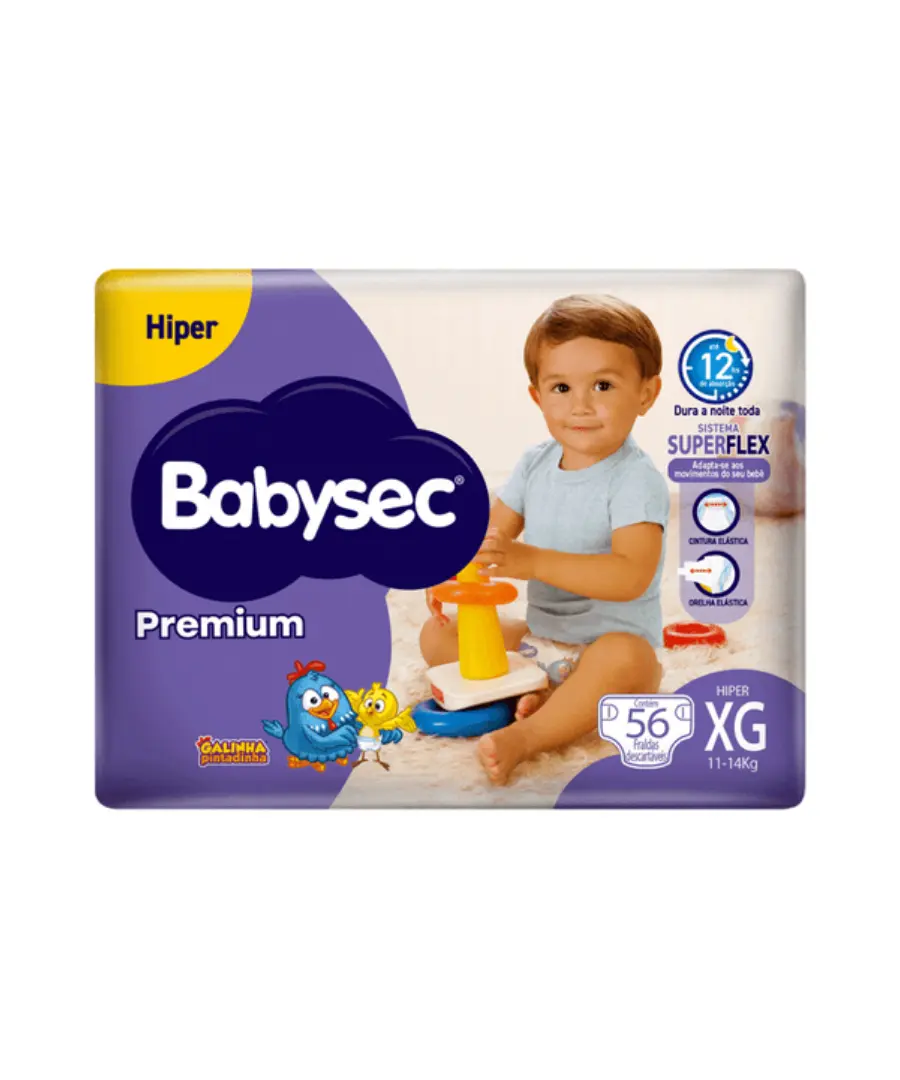 A Fralda Descartável Babysec Galinha Pintadinha Premium Hiper XG – 56 Unidades foi especialmente desenvolvida com uma exclusiva capacidade de absorção e retenção de líquidos das necessidades do bebê. Possui cintura elástica, camada externa tipo algodão, gel extra absorvente, barreiras impermeáveis e fechos reajustáveis, para garantir uma máxima proteção e conforto para o seu bebê. A Fralda Descartável Babysec Premium foi desenvolvida com material de qualidade e macio mantendo a criança confortável e com liberdade de movimento.