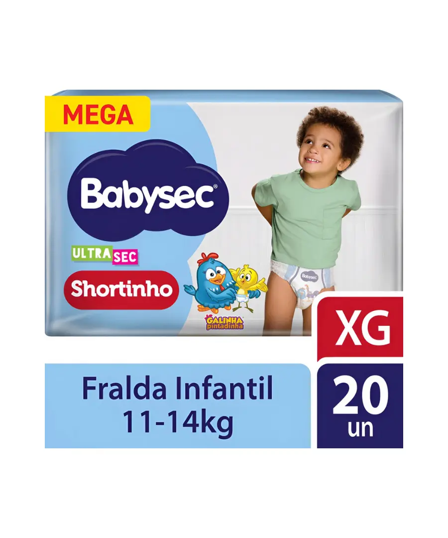 A Fralda Babysec Ultra Shortinho foi desenvolvida para oferecer conforto e proteção ao seu bebê. Com ajuste tipo shortinho, proporciona liberdade de movimento, toque suave e alta absorção, mantendo a pele seca por mais tempo. Ideal para bebês que usam tamanho XG. Ajuste confortável tipo shortinho Alta absorção e proteção prolongada Toque suave para a pele sensível Embalagem com 20 unidades