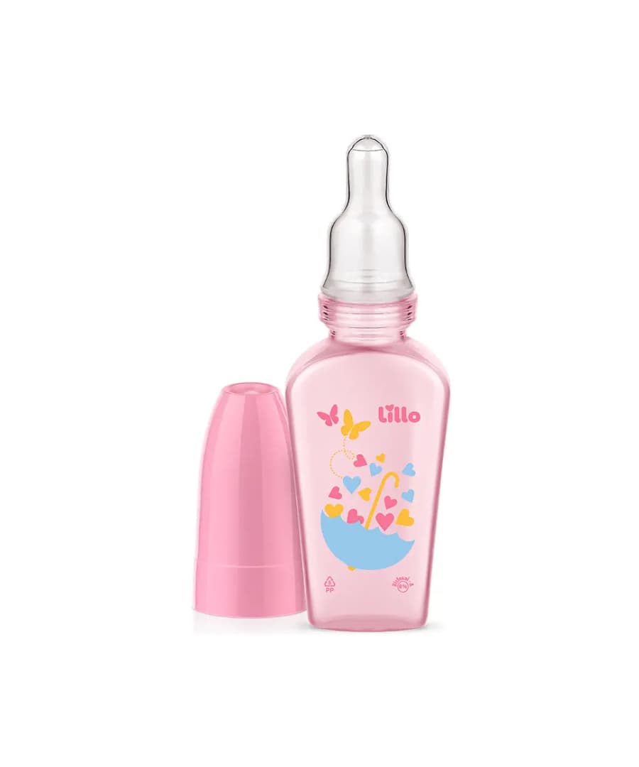 Mamadeira Chuquinha Primeiros Passos 50ml Rosa – Lillo A Mamadeira Chuquinha Primeiros Passos da Lillo tem capacidade para até 50ml, seu bico redondo em silicone flexível possui um pequeno furo para que o fluxo dos líquidos seja lento proporcionando maior conforto durante a alimentação. Livre de BPA.