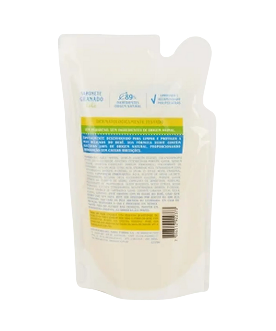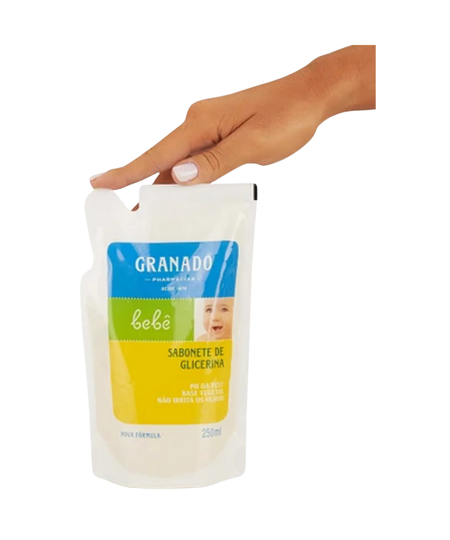 Alinhado com o compromisso e respeito da Granado ao cuidado e preservação do meio ambiente, a linha Bebê agora conta com refis de sabonetes líquidos. A embalagem, mais econômica, apresenta uma redução de 84% deplástico comparada à embalagem original. Formulado com glicerina vegetal e pH da pele, o sabonete limpa com suavidade a pele do bebê, deixando-a macia e perfumada. Especialmente desenvolvido para a pele delicada do bebê. Dermatologicamente testado.