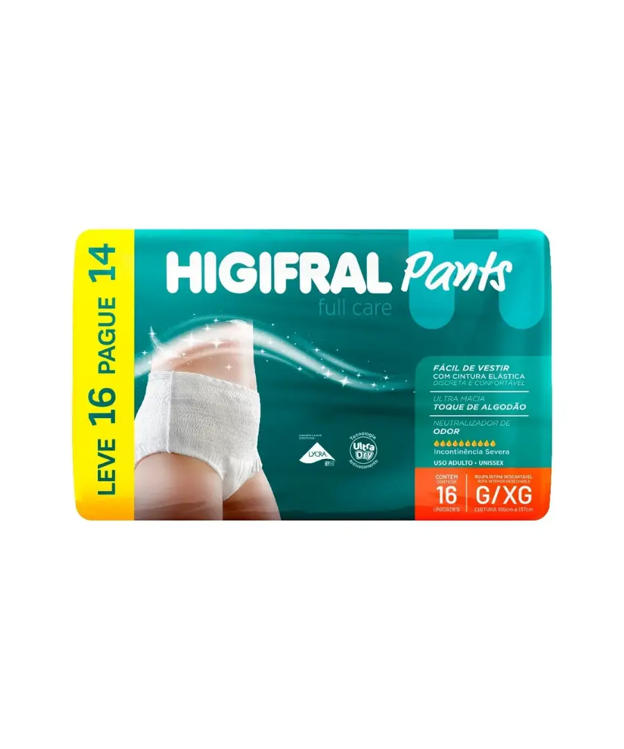 As calças Higifral Full Care Pants, disponíveis no tamanho G/XG, são a solução ideal para aqueles que buscam conforto e segurança em situações de incontinência severa. Cada embalagem contém 16 unidades, garantindo um suprimento confiável para o dia a dia. Com um contorno mínimo de cintura de 100 cm e um máximo de 137 cm, essas calças foram projetadas para se ajustar perfeitamente ao corpo, proporcionando liberdade de movimento. A absorção máxima é uma das principais características deste produto, oferecendo proteção eficiente e conforto. Elas são descartáveis, o que facilita a gestão da higiene pessoal. Destacam-se por serem um item prático, permitindo que os usuários mantenham sua rotina diária de forma tranquila. As Higifral Full Care Pants são ideais para idosos, pessoas com mobilidade reduzida ou qualquer pessoa que necessite de suporte adicional. Elas proporcionam uma sensação de segurança, permitindo viver o dia a dia sem preocupações. Invista na qualidade e bem-estar, garantindo que cada momento seja vivido com confiança.