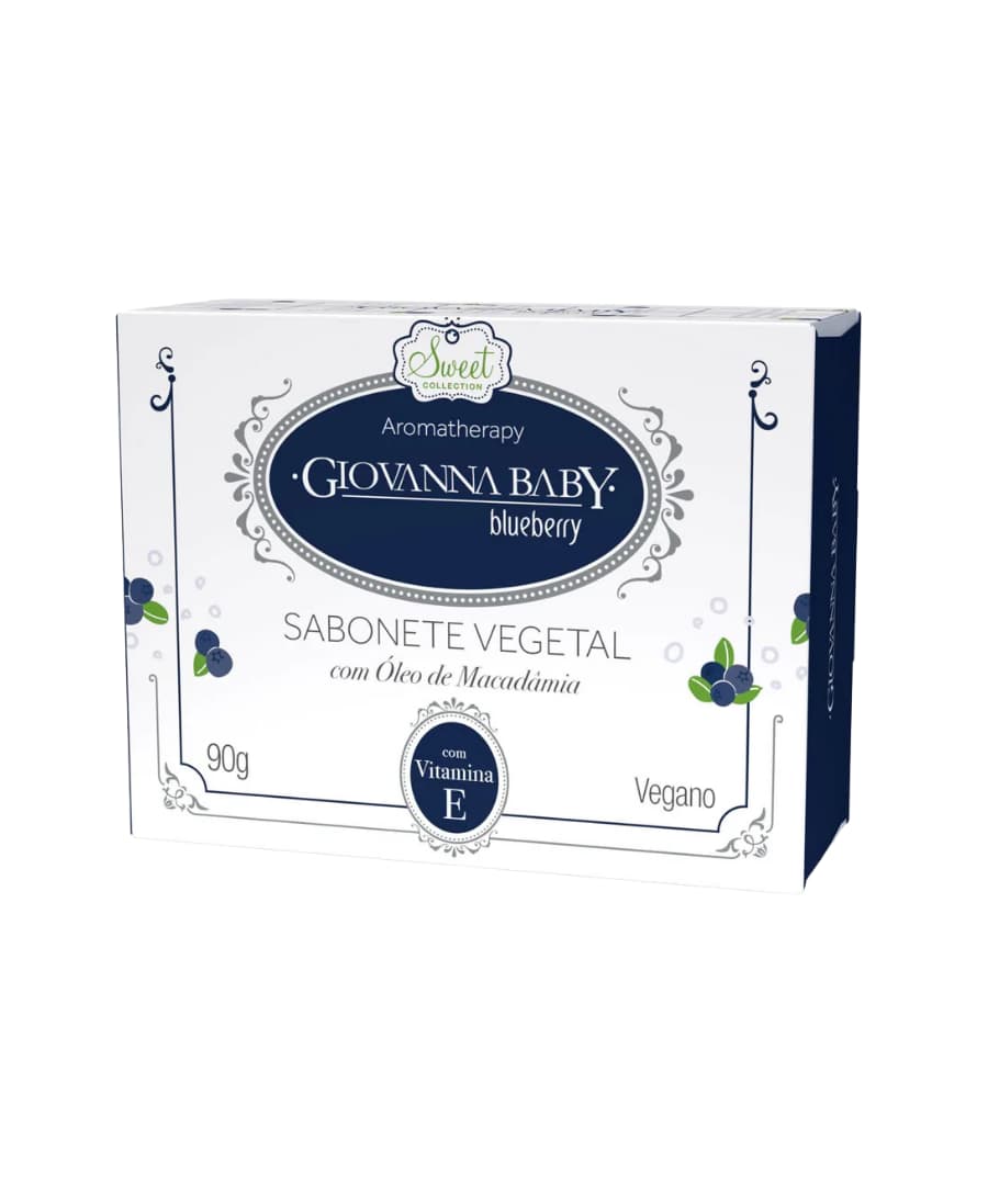 Sabonete em Barra Vegetal Blueberry Giovanna Baby 90G Sua fórmula desenvolvida com base vegetal, mais biocompatível com a pele, é enriquecida com óleo de Macadâmia e Vitamina E, conhecida por suas propriedades antioxidantes. O óleo de Macadâmia contribui para regenerar, nutrir e hidratar a pele.
