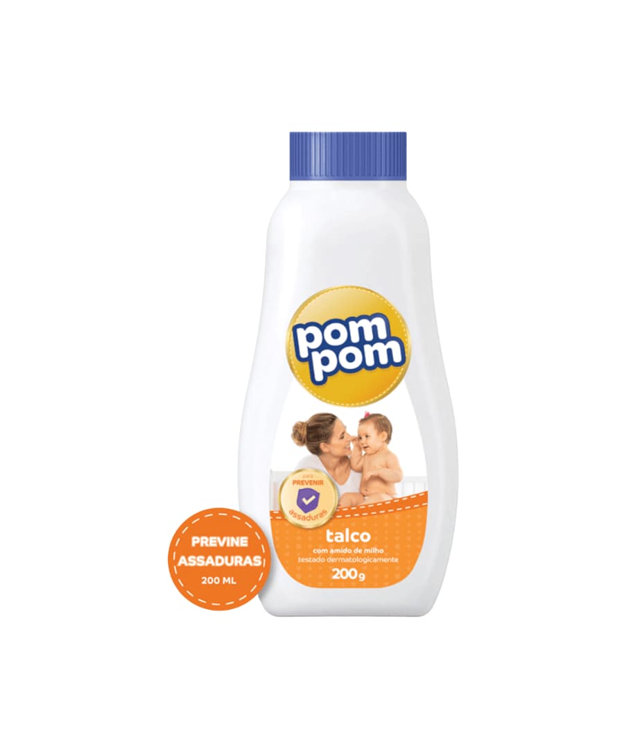 O novo Talco Pom Pom protege a pele do bebê contra o atrito e a umidade, que podem causar assaduras e irritações. Feito com amido de milho, garante suavidade e maciez à pele.